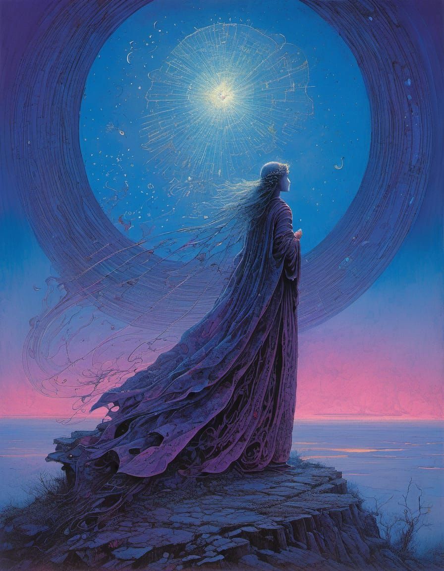 This enchanting image depicts a mystical fairy queen in a dreamlike setting, blending deep colors and intricate details with a touch of the surreal and unknown, reminiscent of the works of artists like Harry Clarke and Gustav Klimt.