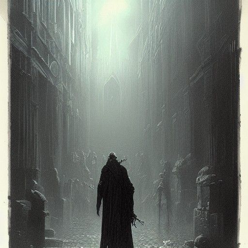 This image shows a horrifying grem creeper. The artwork is reminiscent of dark engravings and paintings.
