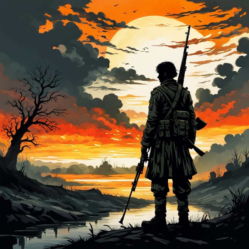 Easily generate your own melancholy soldier at sunset images with our free and flexible AI generator. Try it now!