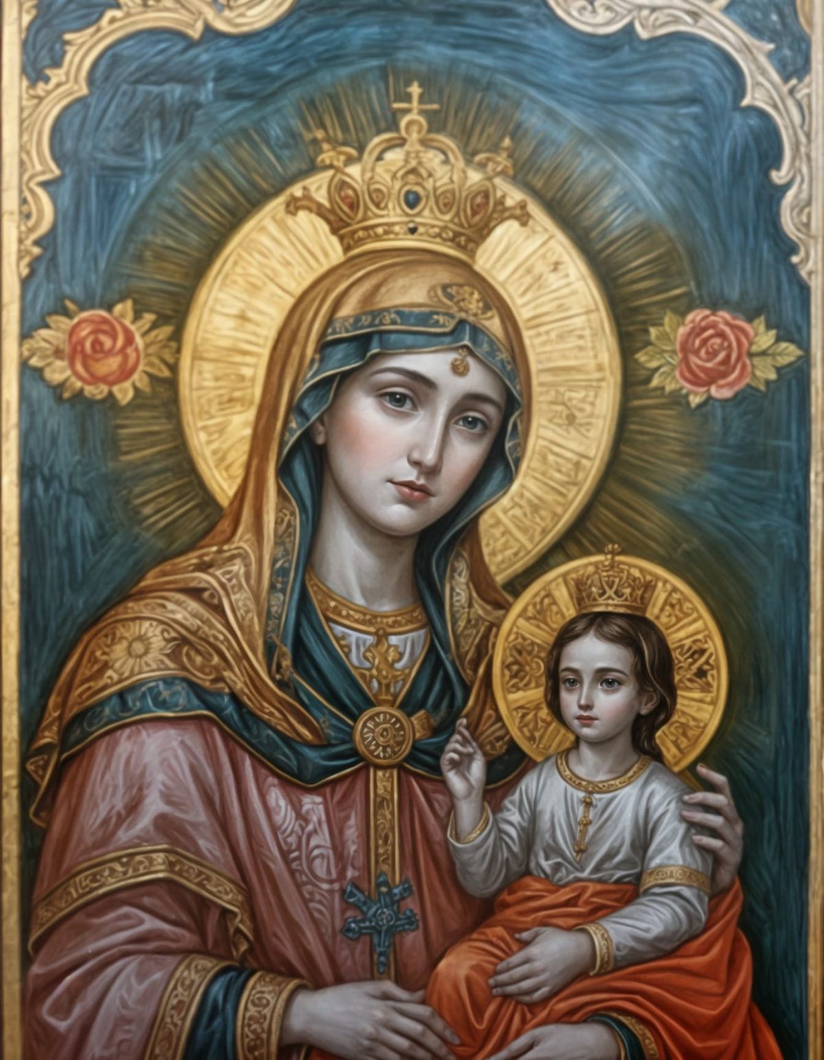 Create your own beautiful Orthodox Christian icons of the Virgin Mary with our free AI image generator.