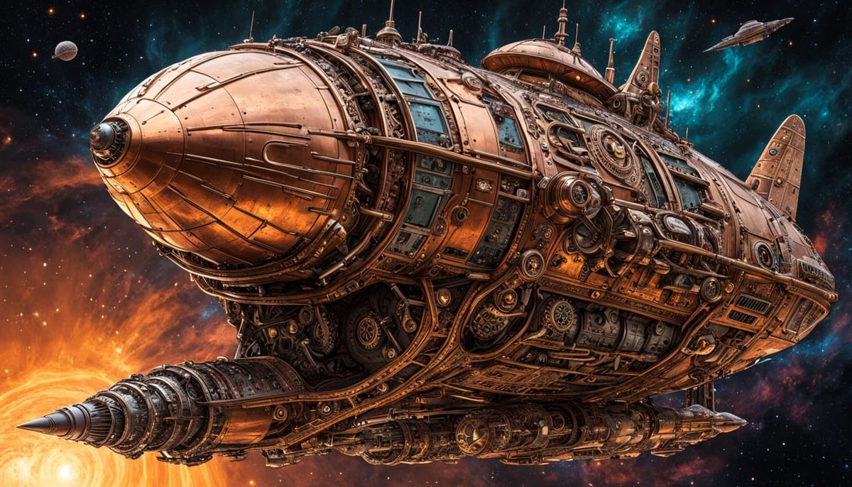 Create futuristic steampunk-inspired space ships with our free AI image generator. No design experience needed!