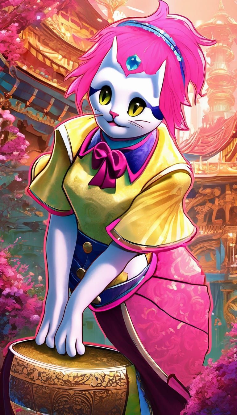 This enchanting DVD cover features a fantastical world of cats, with a brave heroine and her feline friends, set against a dreamy backdrop of blues and pinks, with golden accents, reminiscent of Hayao Miyazaki's and James Gurney's artistic styles.