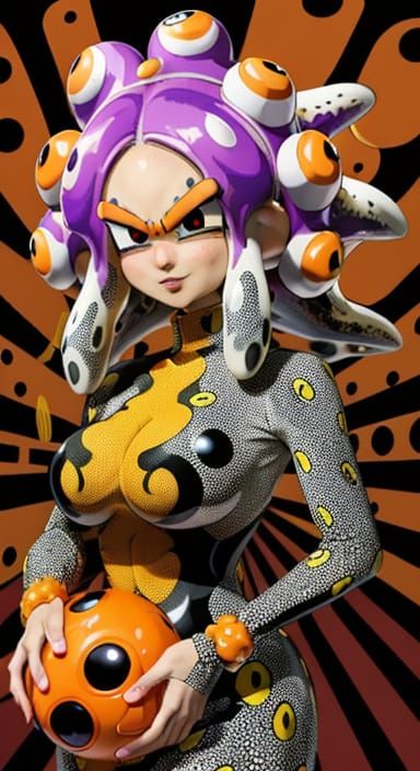 This vibrant portrait depicts a woman with an Afro, surrounded by a cityscape reminiscent of Downtown Los Angeles. Inspired by the colorful, playful styles of Yayoi Kusama and Takashi Murakami, this image blends elements of Japanese pop art with the dark, biomechanical flair of H.R. Giger, creating a uni...