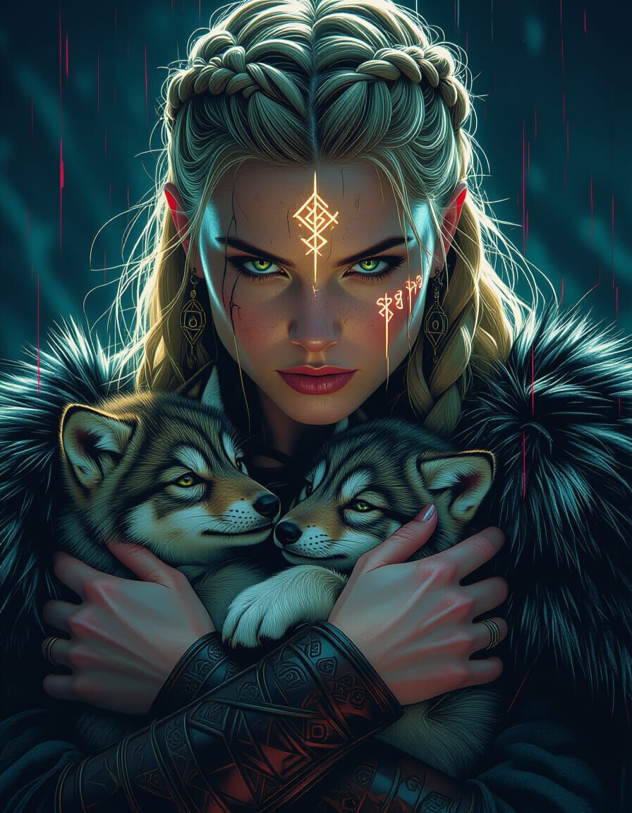 Create your own images of fierce Viking shieldmaidens and their animal companions with our free AI image generator!
