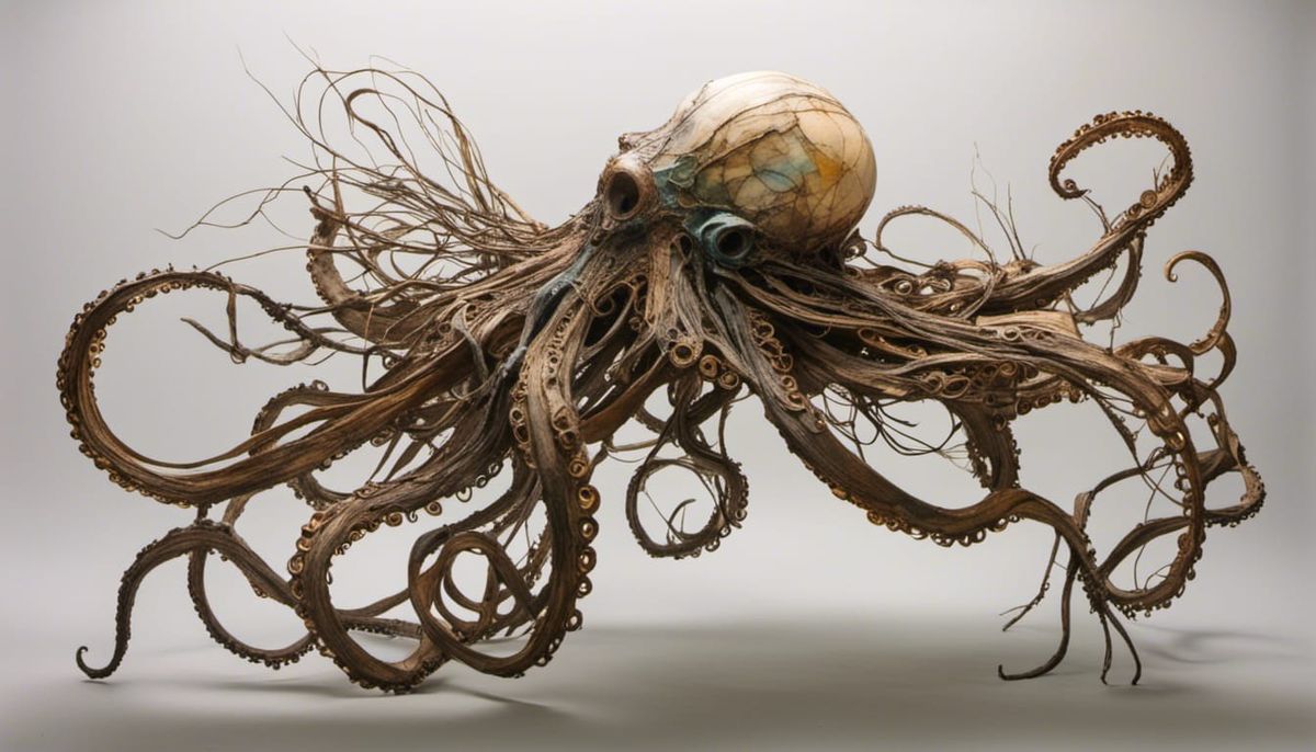 A detailed image of an octopus, evoking Ellen Jewett's sculptural style. The artwork emphasizes intricate details and a vibrant color palette to capture the essence of marine life.