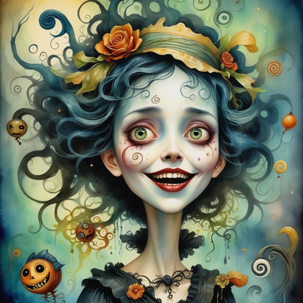 Create your own whimsical watercolor portraits in the style of Tim Burton and other visionary artists. It's free and easy!