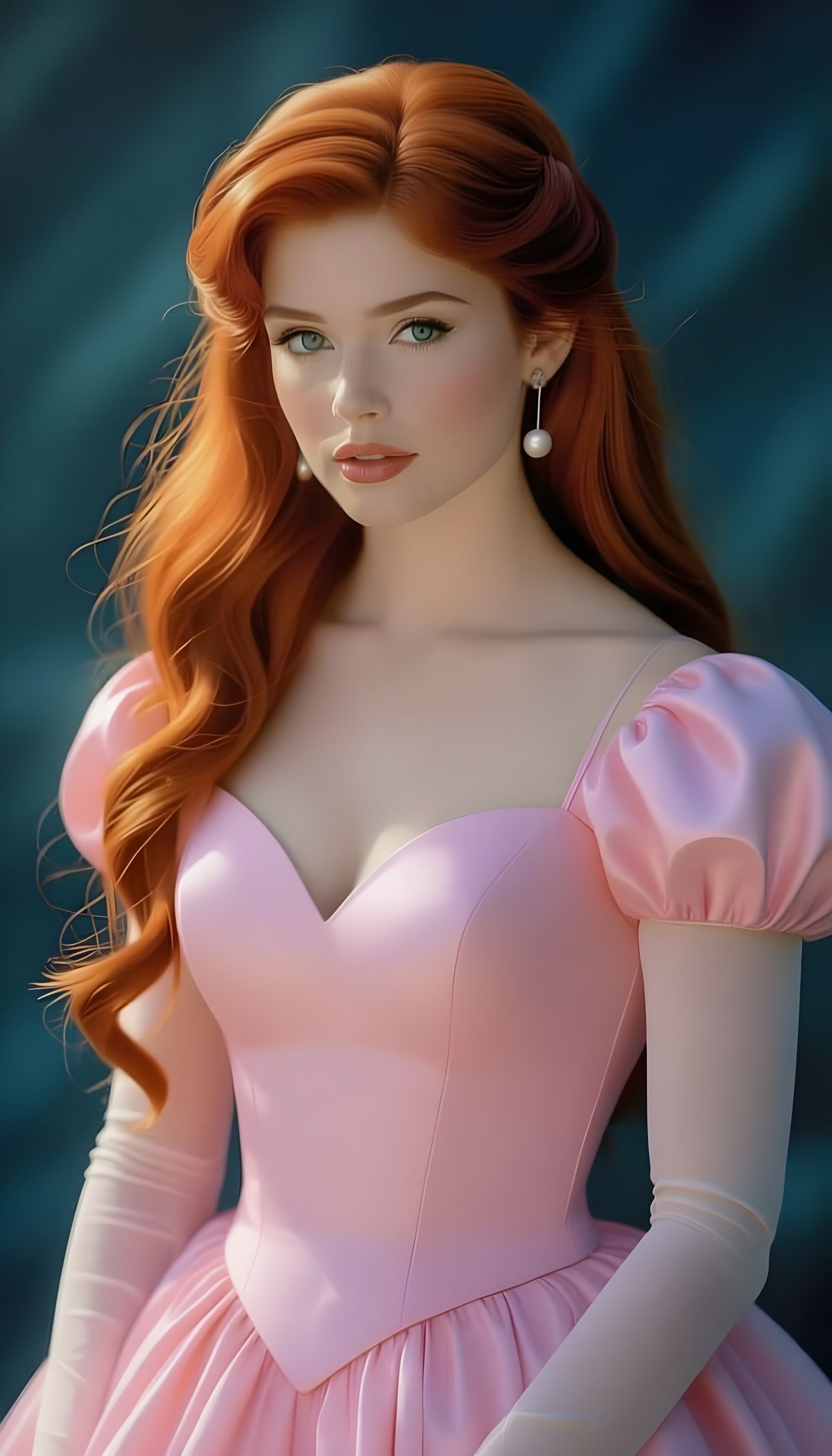 This image is a hyper-detailed, ultra-sharp close-up portrait of Ariel from The Little Mermaid, presented as a cinematic live-action film still with realistic lighting and film grain.