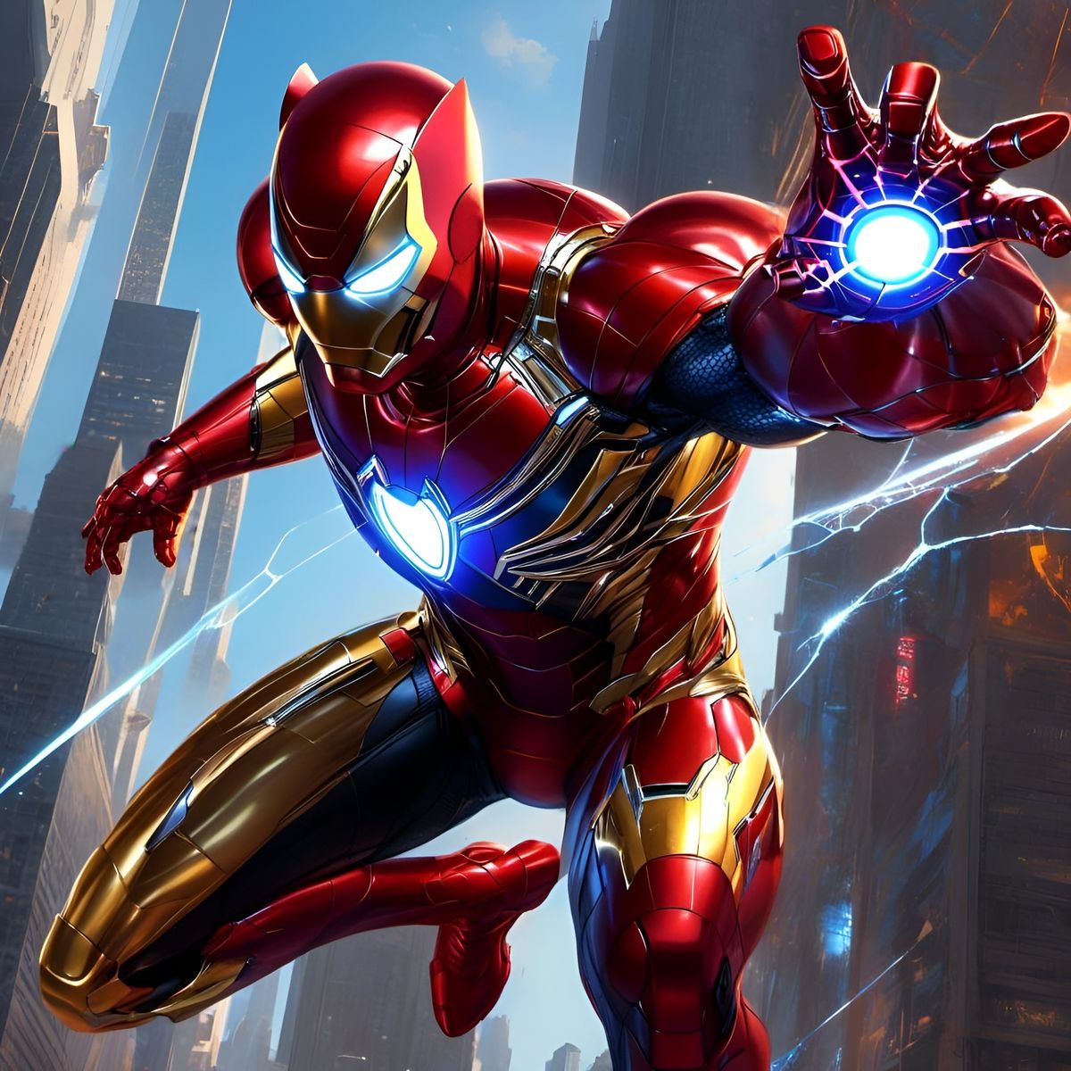 A hyperdetailed digital painting of a superhero amalgam of Iron Man, Spider-Man, and Black Panther. This striking image features perfect anatomy and a detailed background, rendered in a CGSociety style.