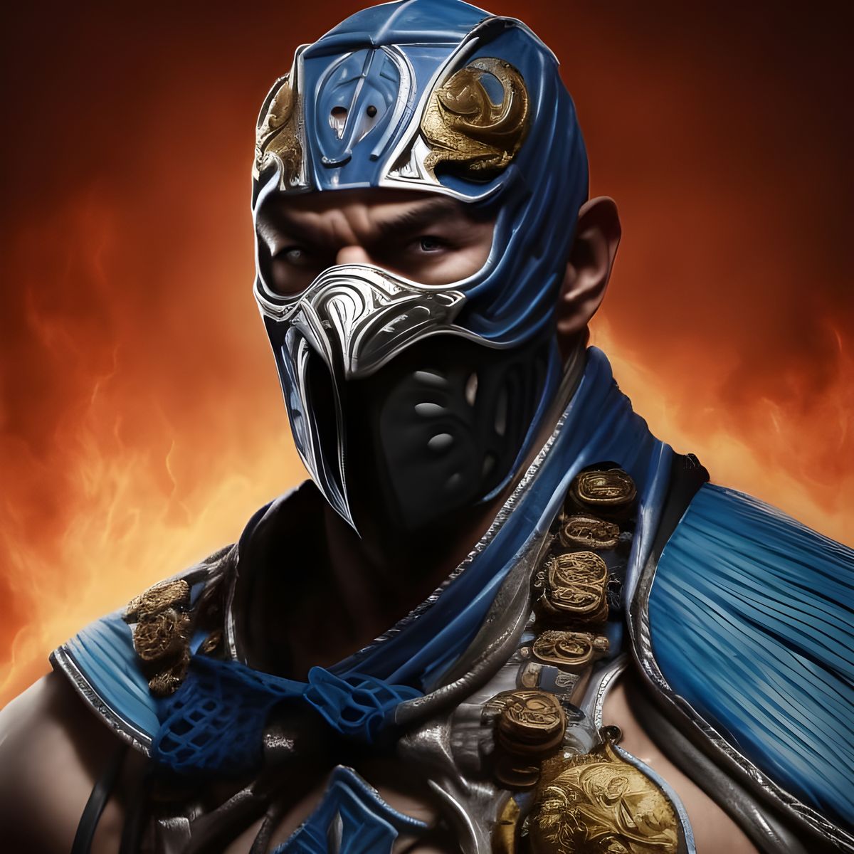 A detailed digital portrait of Sub Zero, the Mortal Kombat ninja warrior. This high definition, hyperrealistic 8K image is rich with ornate details and post-production effects.