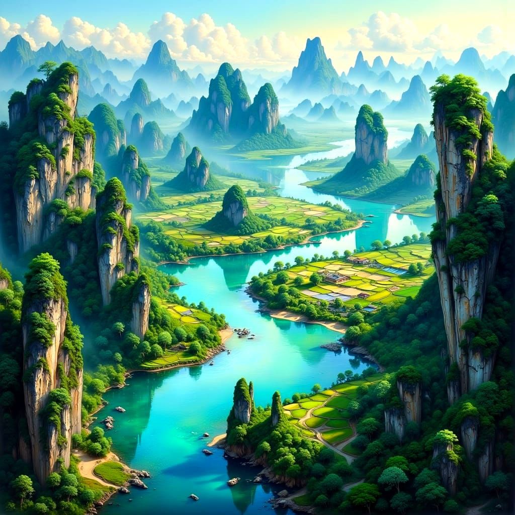 Create your own breathtaking Li River landscape images with our free and easy AI image generator.