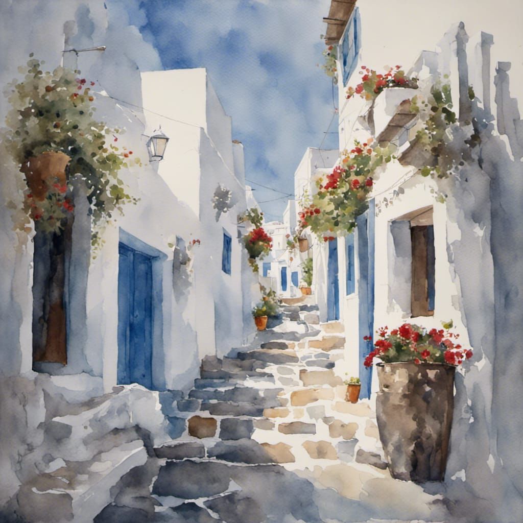 Create your own stunning watercolor art of Mykonos, Greece with our free and easy AI image generator!