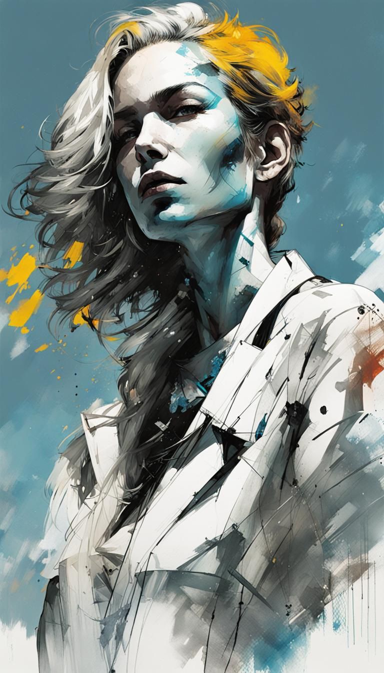This image shows a character concept art piece in inkpunk style. It is finely detailed with vivid, rich colors, creating a gritty, underground feel in 8k resolution.