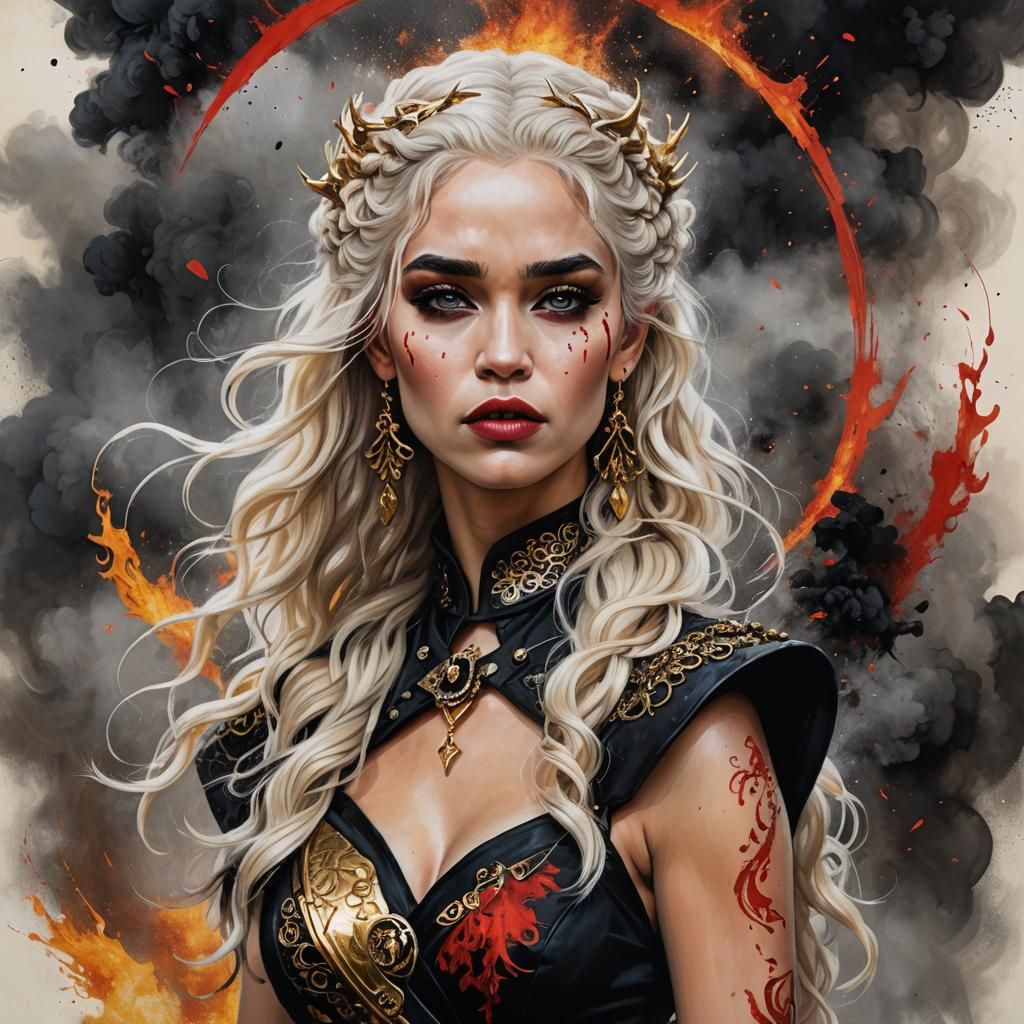 A digital painting of a punk dancer with striking makeup. The character is wearing bold clothing and jewelry, set against a dark, smoky backdrop in a rococo style.