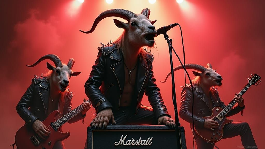 Easily generate your own heavy metal goat band images with our free AI image generator. No design skills needed!