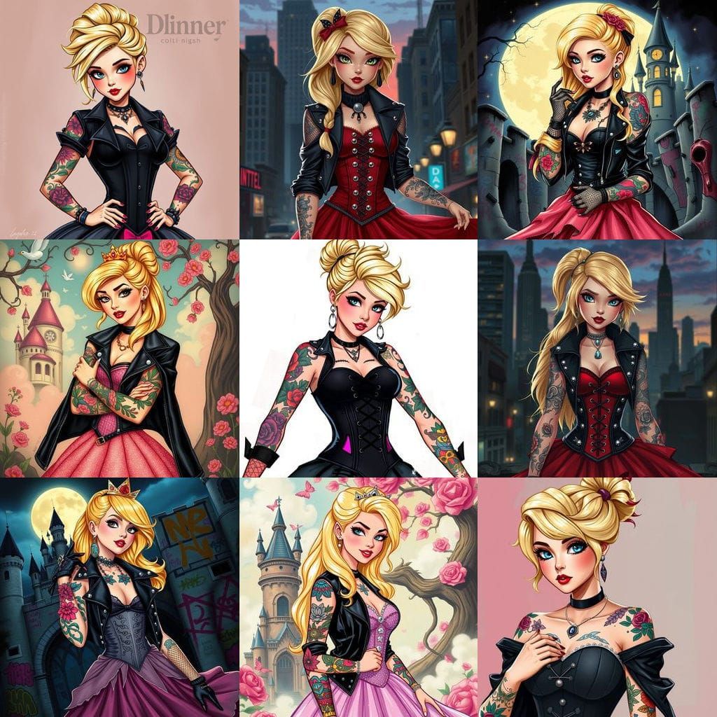 Design your own princess characters with punk style tattoos using our free AI image generator