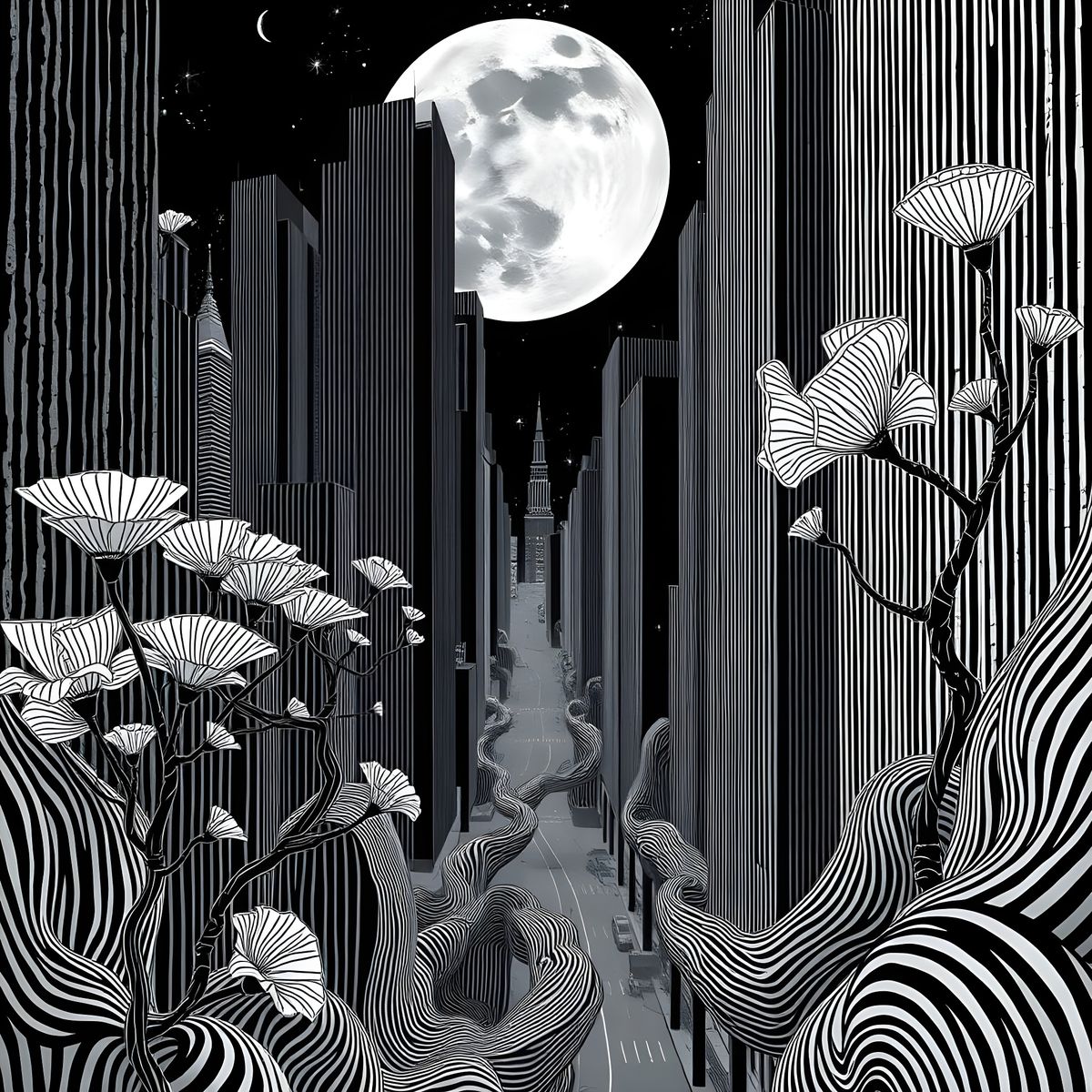Tonight...The streets meander in a river of mourning, of fragmented lines and sleepless figures. Every corner emits a monochromatic echo, a deep and dramatic emotional chiaroscuro.