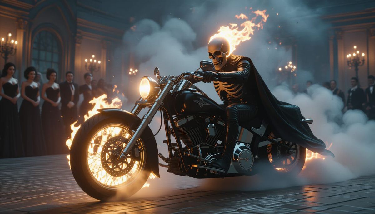 Generate unique images of ghost riders, skeletal bikes, and ghouls with our free AI tool. Easy and fast!