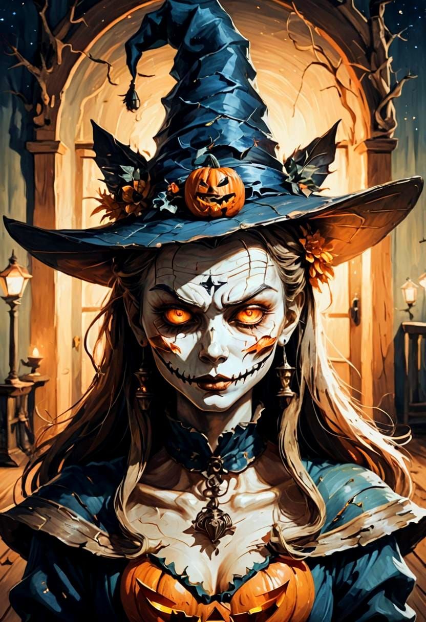 A festive Halloween image. This picture depicts traditional Halloween imagery generated with a simple prompt. It captures the essence of the holiday.