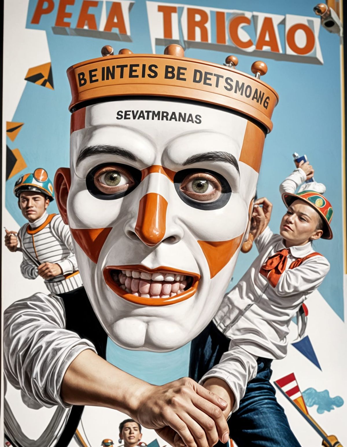 This abstract art piece features a geometric composition with triadic colors, motion blur, and shadow effects, evoking a sense of retrofuturism and depth.