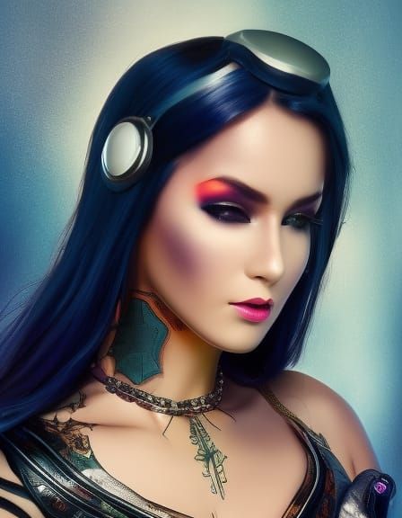 cybernetic cables hair, full body, cover, hyperdetailed painting, luminism, Bar lighting, complex, 4k resolution concept art portrait, little fusion pojatti realistic goth, fractal isometrics details bioluminescens : a stunning realistic photograph 20yrs, vivid neon purple futuristic cyberpunk background, ...