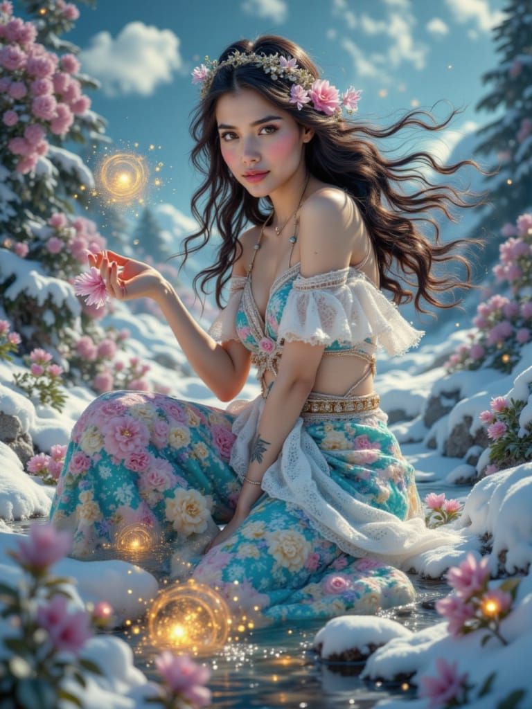 This image is an AI-generated artwork created using a combination of several LoRA models, including True Metallics, Snow Tiger, Heron Snow, and FluxSeed, resulting in a unique visual composition.