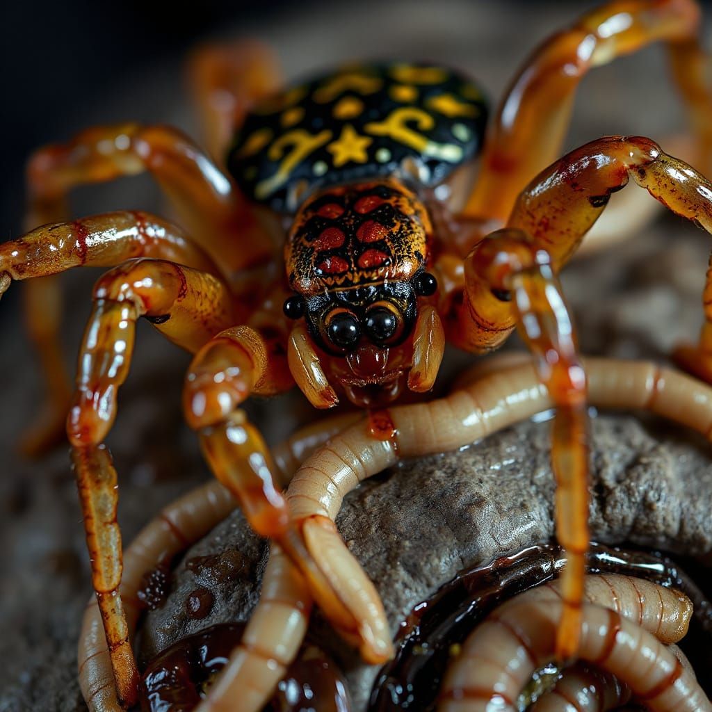 This image is a striking representation of eerie, macroscopic creatures in a dark, charcoal-inspired aesthetic, blending elements of latex and slime.