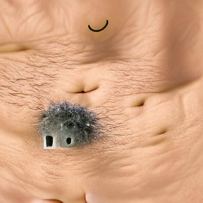 This image depicts a sad man contemplating his navel fluff. The shot focuses on his torso and downcast expression, conveying a sense of dejection and introspection.