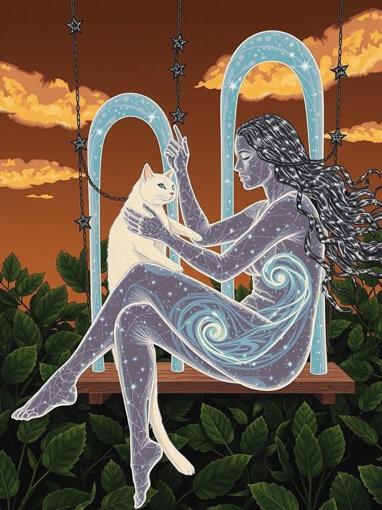 Generate your own transparent, starry women with cats. Easy, free AI image creation.