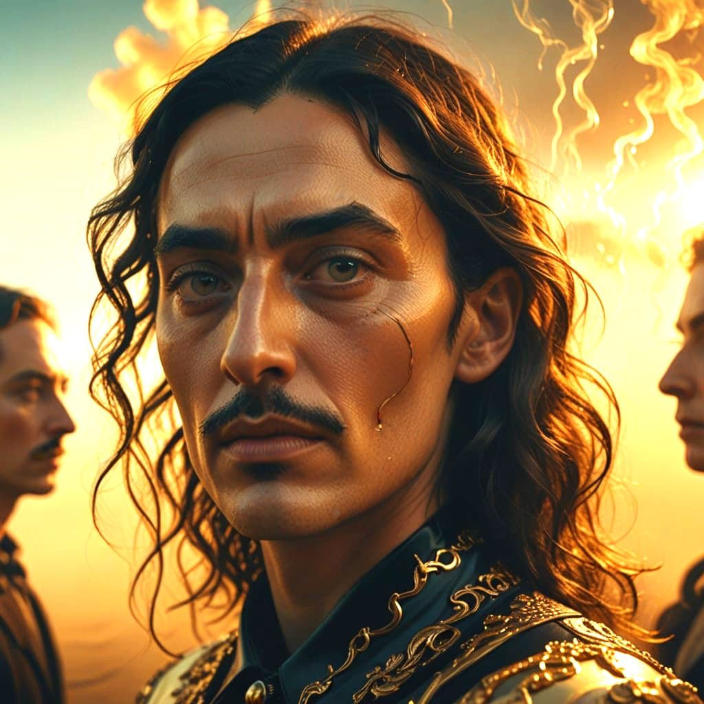 This image is what an AI image generator created when given a very simple prompt about a doppelganger. The surreal portrait has a dreamlike quality.