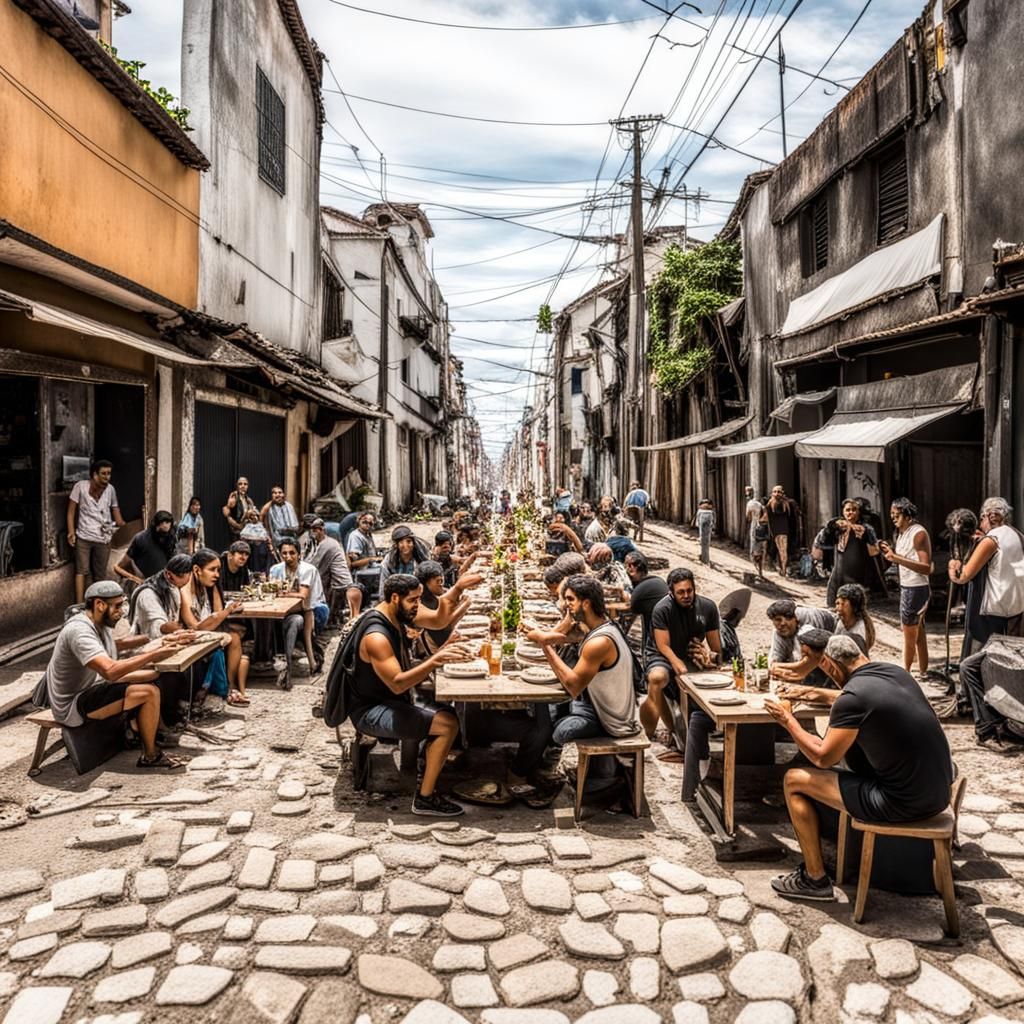 This image shows urban explorers in a vibrant cityscape, capturing the energy of unique, authentic experiences in lesser-known streets. The image is a detailed matte painting with deep color and intricate details.