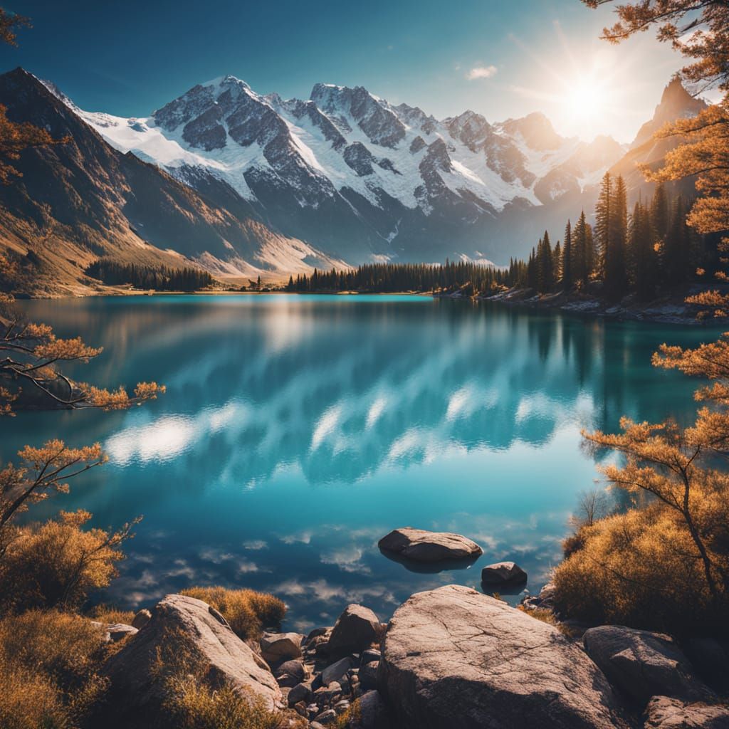 Generate your own beautiful blue lake and mountain images with our free and easy AI tool. Unleash your creativity today!