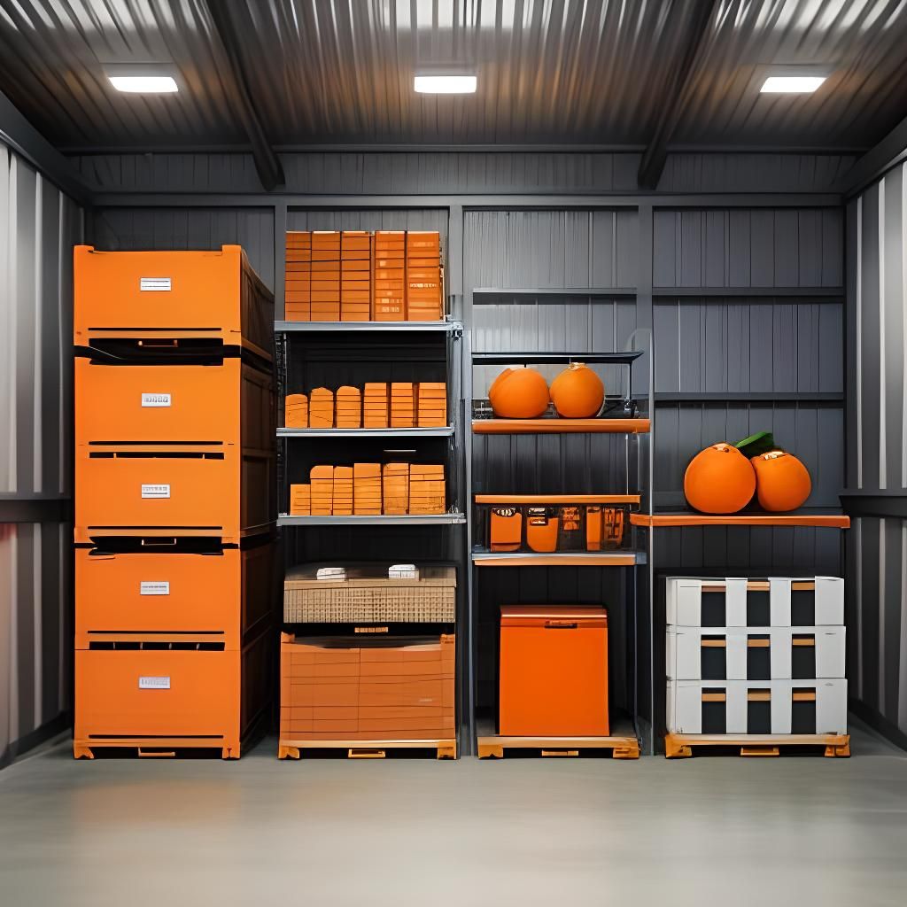 This image shows a vibrant orange fruit in a storage setting. The AI-generated image captures the simple subject with clarity and detail.