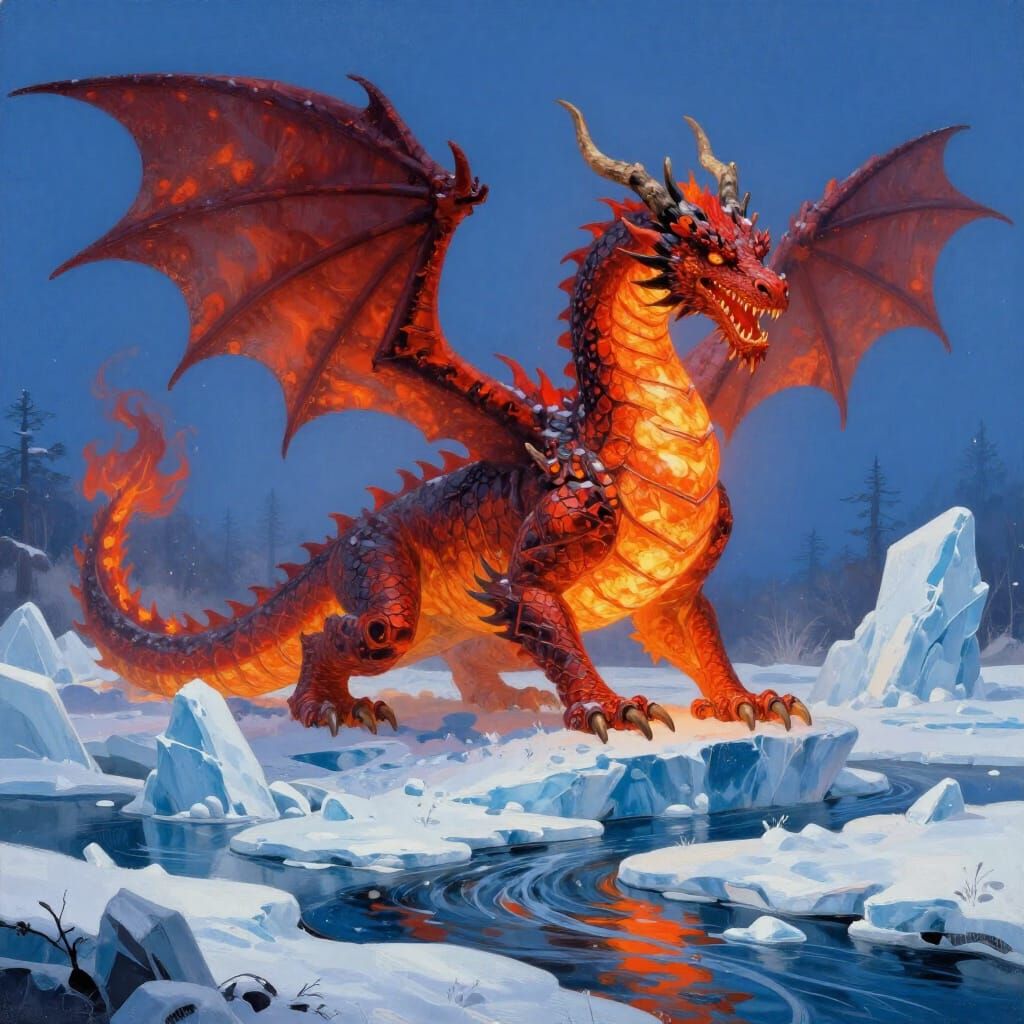Generate unique lava dragon and ice creature images with our free and easy AI art tool.