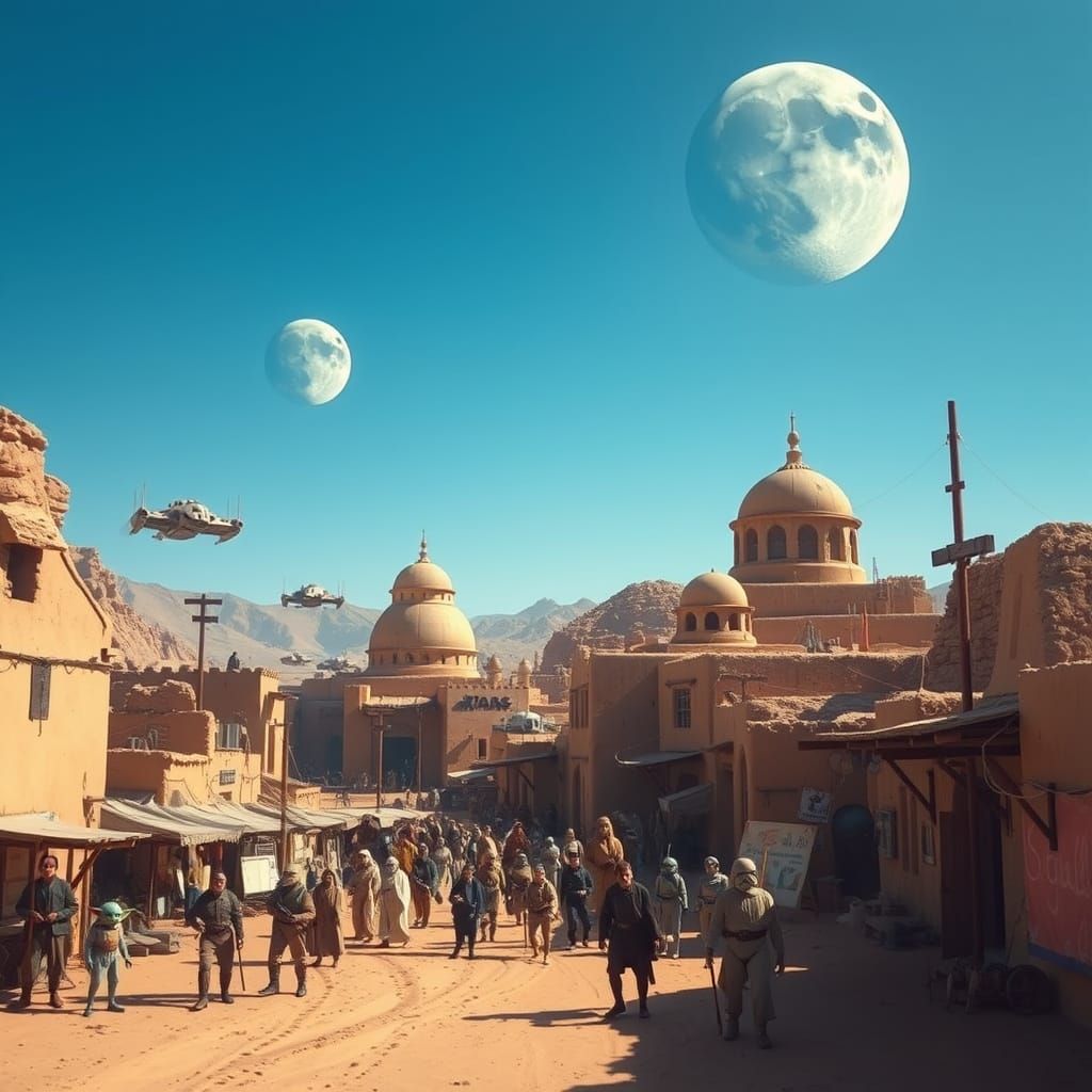 Easily generate your own realistic desert village images on Tatooine with our free AI image generator