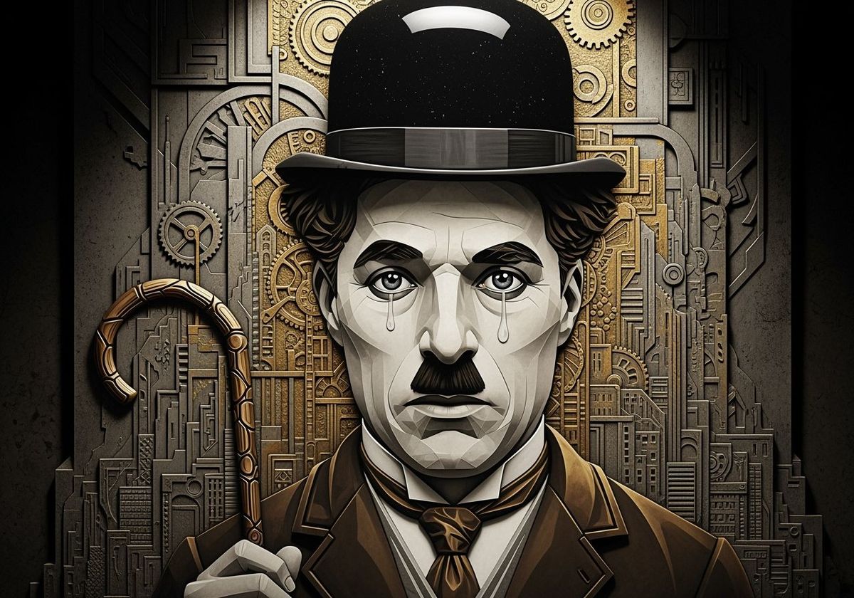 Beyond the slapstick lies the poet. This portrait strips away the costume to reveal Chaplin's true legacy: a deeply humanist spirit, immortalized not in fabric, but in the enduring metals of the machine age he chronicled.