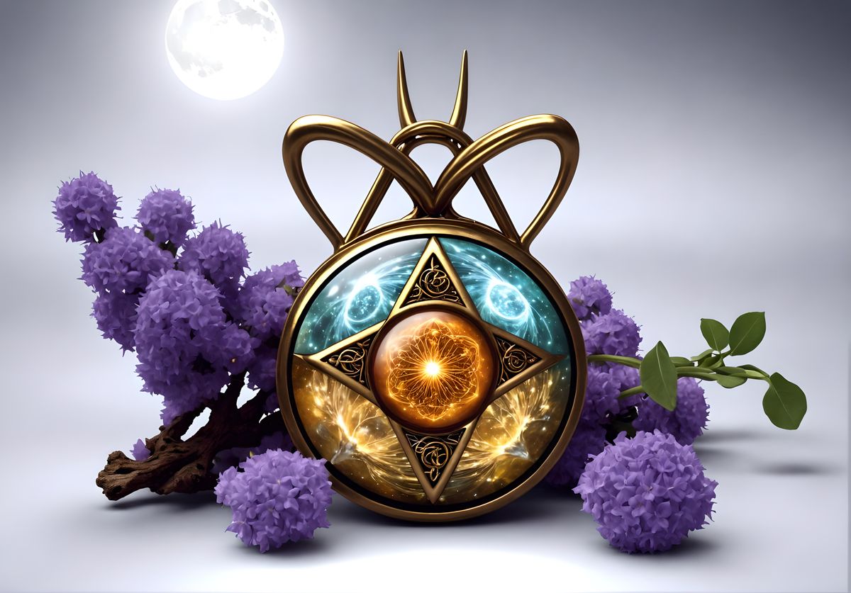 This image shows an amulet that combines elements of nature, including desert flora and crystalline fractals, with astrological symbols and protective sigils, creating a powerful, mystical artifact.