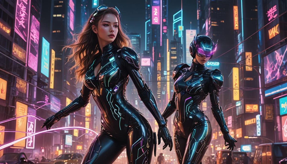 Instantly generate your own cyberpunk city images with witches in a latex suit, free and easy