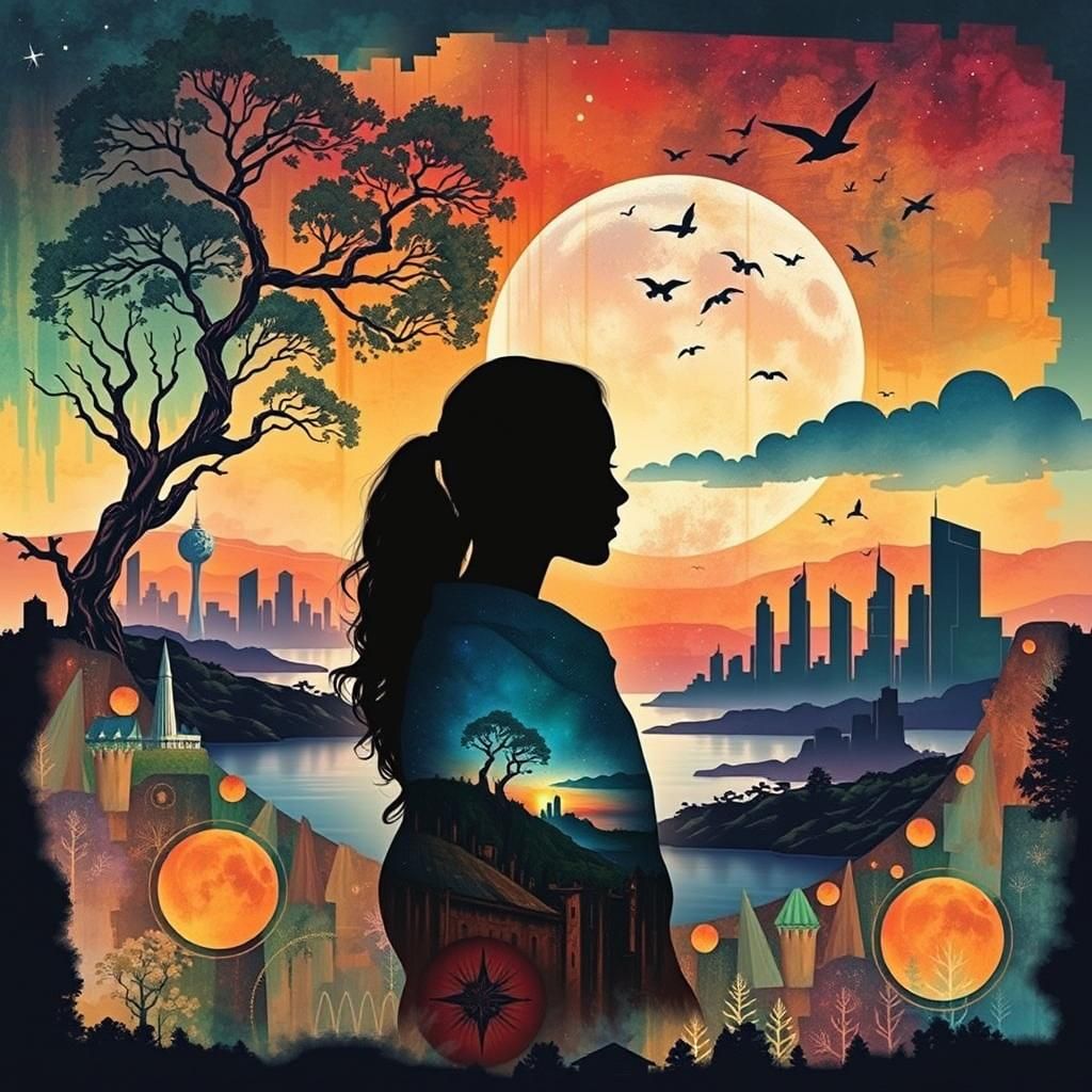 A vibrant collage representing self-improvement and empowerment. The artwork features a silhouetted woman against a surreal sunset, surrounded by inspirational elements and vivid colors, in a surreal photography style.