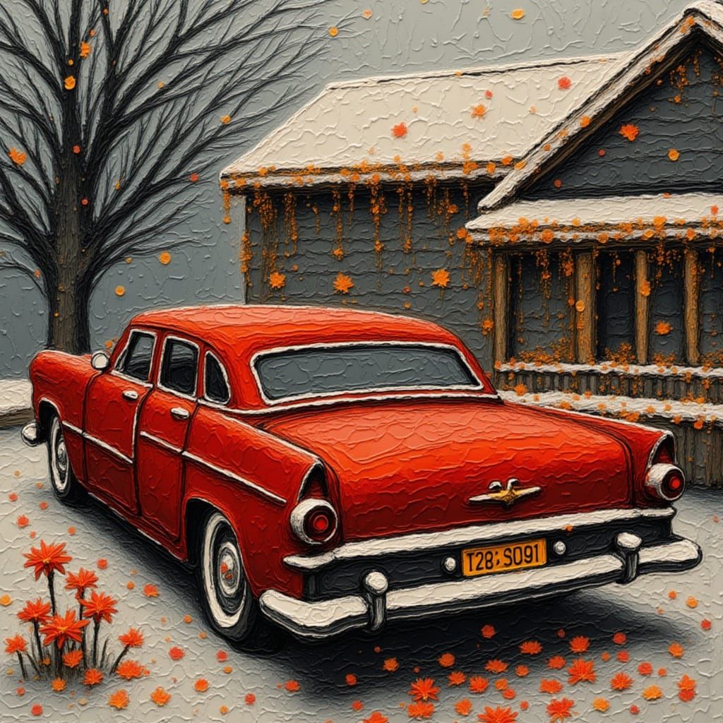 Fancy vintage car ..love the textures and strong colours in this amazing image ❤️🖤🤍😃