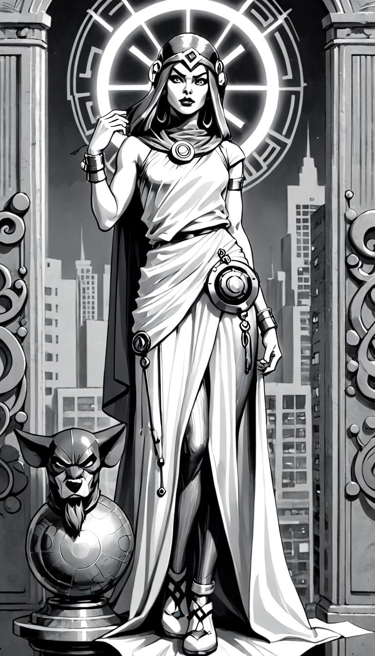 This dynamic illustration showcases a superhero in mid-air, set against a bustling cityscape. Created in the style of classic Marvel comics, it features bold lines, expressive shading, and dramatic lighting, with a focus on high contrast and detailed textures.