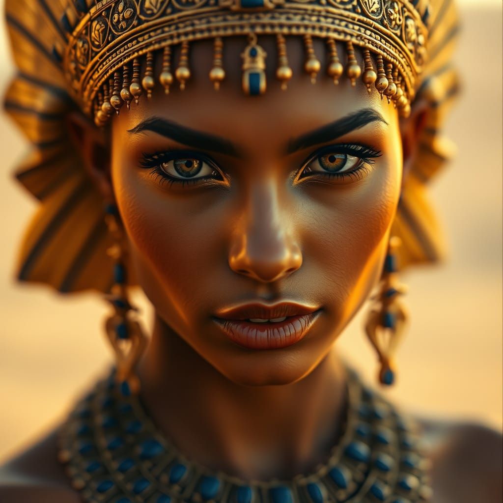 Easily generate your own photorealistic portraits of beautiful women inspired by ancient Egyptian beauty standards. It's free, easy, and flexible.