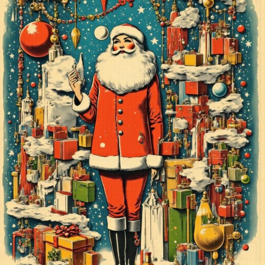Generate your own vintage-style AI Christmas images with Santa in a mid-century modern aesthetic. Free and easy!
