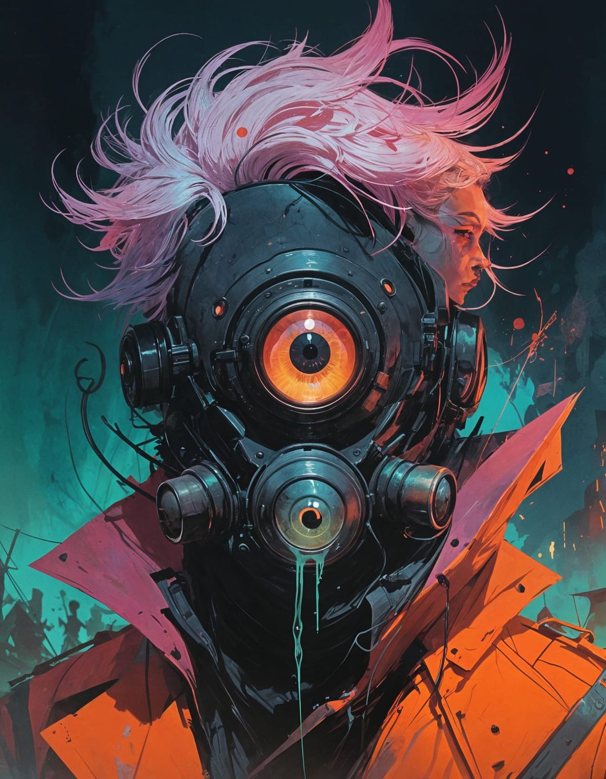 A vibrant yet unsettling image of a sinister, otherworldly being with multiple eyes and a dark aura. Bioluminescent elements and a campy sci-fi aesthetic enhance this epic character composition.