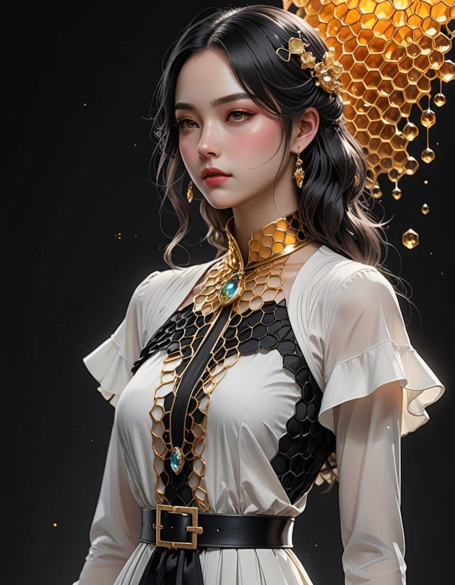 Get creative with our free AI image generator - no experience needed! Design unique art pieces like this black and white watercolour honeycomb dress in seconds.