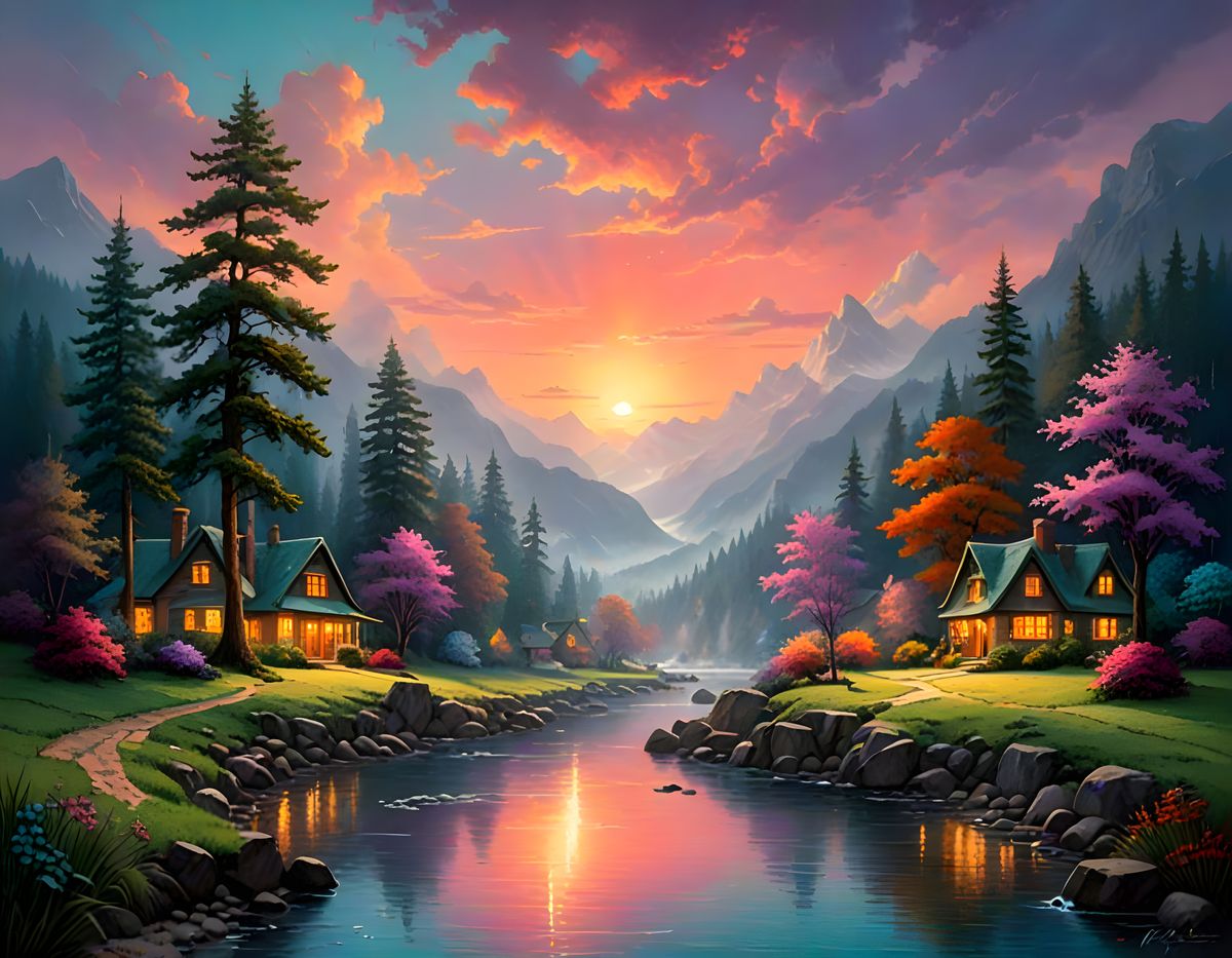 Easily create your own sunset landscape paintings with our free AI image generator.