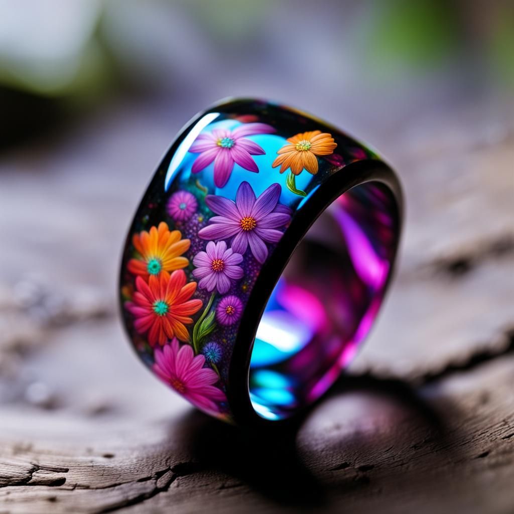 Create your own unique glass ring designs filled with flowers and alien landscapes. It's free and easy!