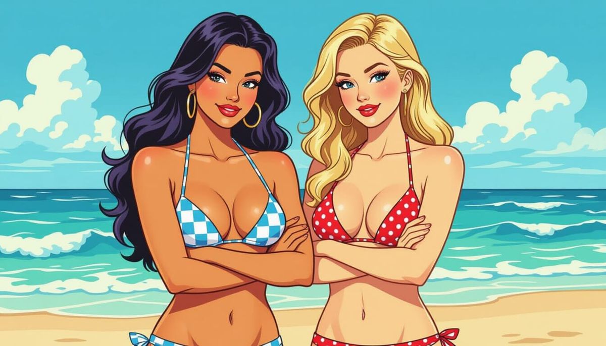 betty and veronica bikini beach scene