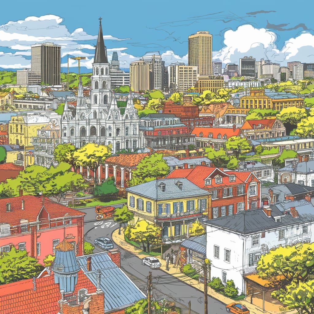 Easily create your own New Orleans cityscapes with our free AI image generator, in the style of Herge's Tin Tin