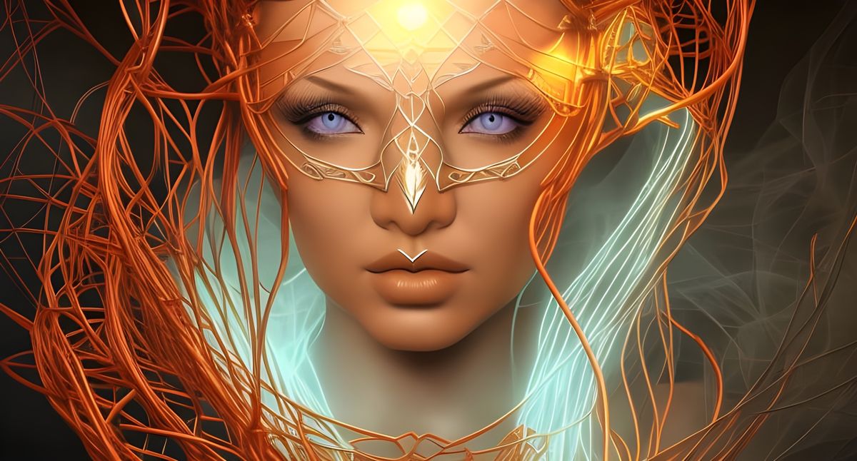 beautiful striking young shibari woman intricate plasma mesh lace glowing luminous polychrome warrior goddess; photo realism, hyper realistic, Central fantasy art album cover art 4K 64 megapixels 8K resolution HDR
