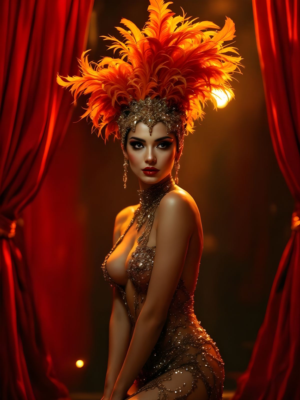 Create your own glamorous showgirl images with our free and easy AI image generator!